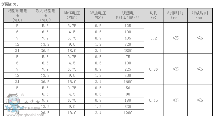 2、線圈額定電壓:5V,6V,9V,12V,15V,18V,24V, (DC);