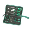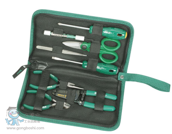 "世達8件套電子工具組套是一種小型多用途的維修包,為廣大電子工程師、設備工程師.技術員等日常工作需要所設計。所有配置工具均放置在一個滌綸拉鏈工具包中.方便攜帶和收納。工具包的表面材料經特殊處理手感舒適工具包面材料特別添加耐寒劑具有抗裂功能。避免冬天工具包產生破裂并始終保持手感柔軟工具包內層加固在使用過程中不易變形工具包尺寸:245x160x35MM"