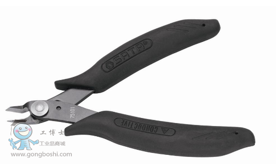 手柄采用防靜電材料制作.尤其適于特殊要求的防 靜電工作場合 *大剪切線徑:?1.3MM 細形刀口 請勿用來剪鋼線或鐵線"