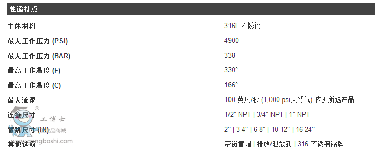 • 帶鏈管帽,排放/泄放孔和不銹鋼銘牌可選