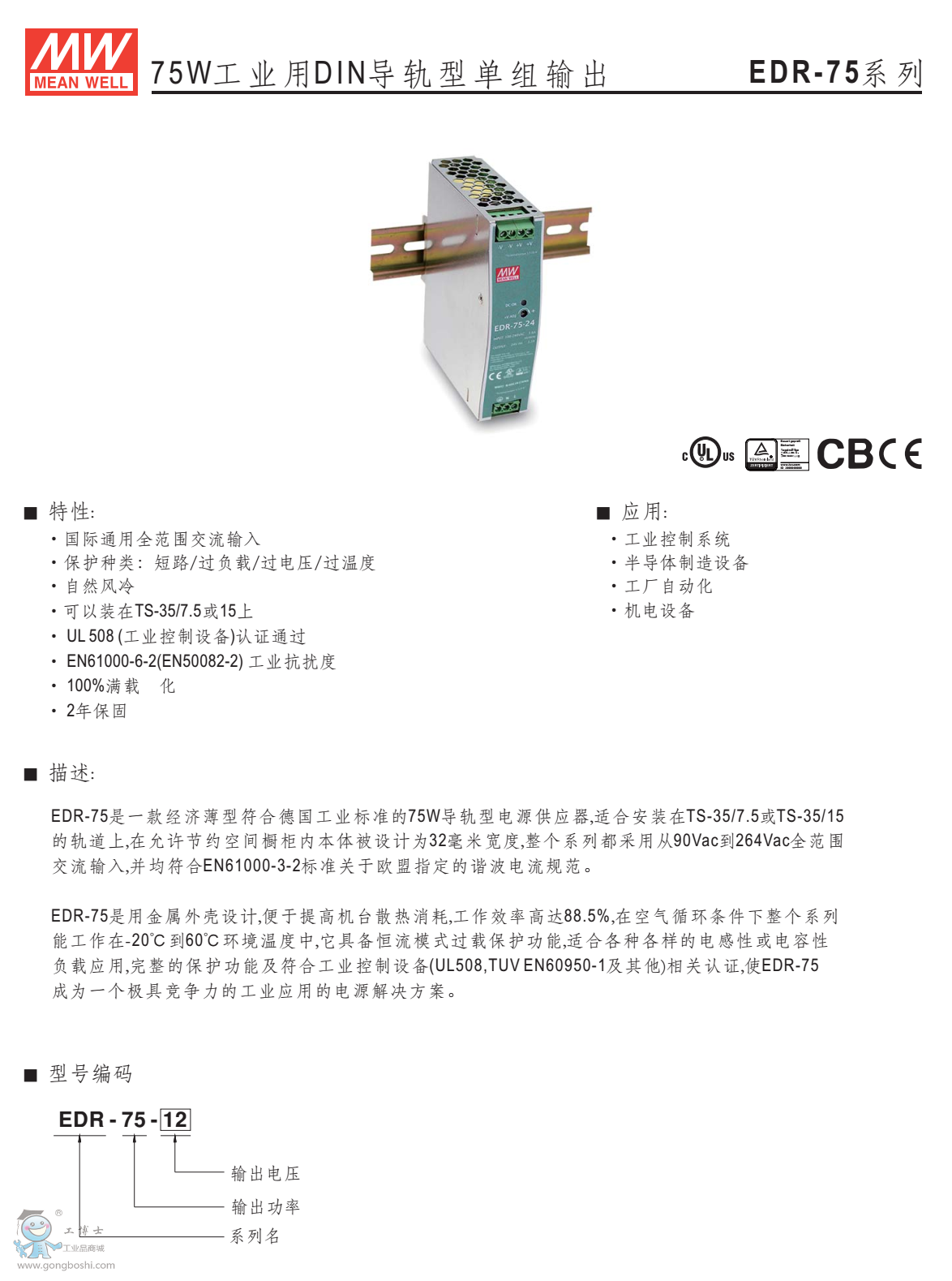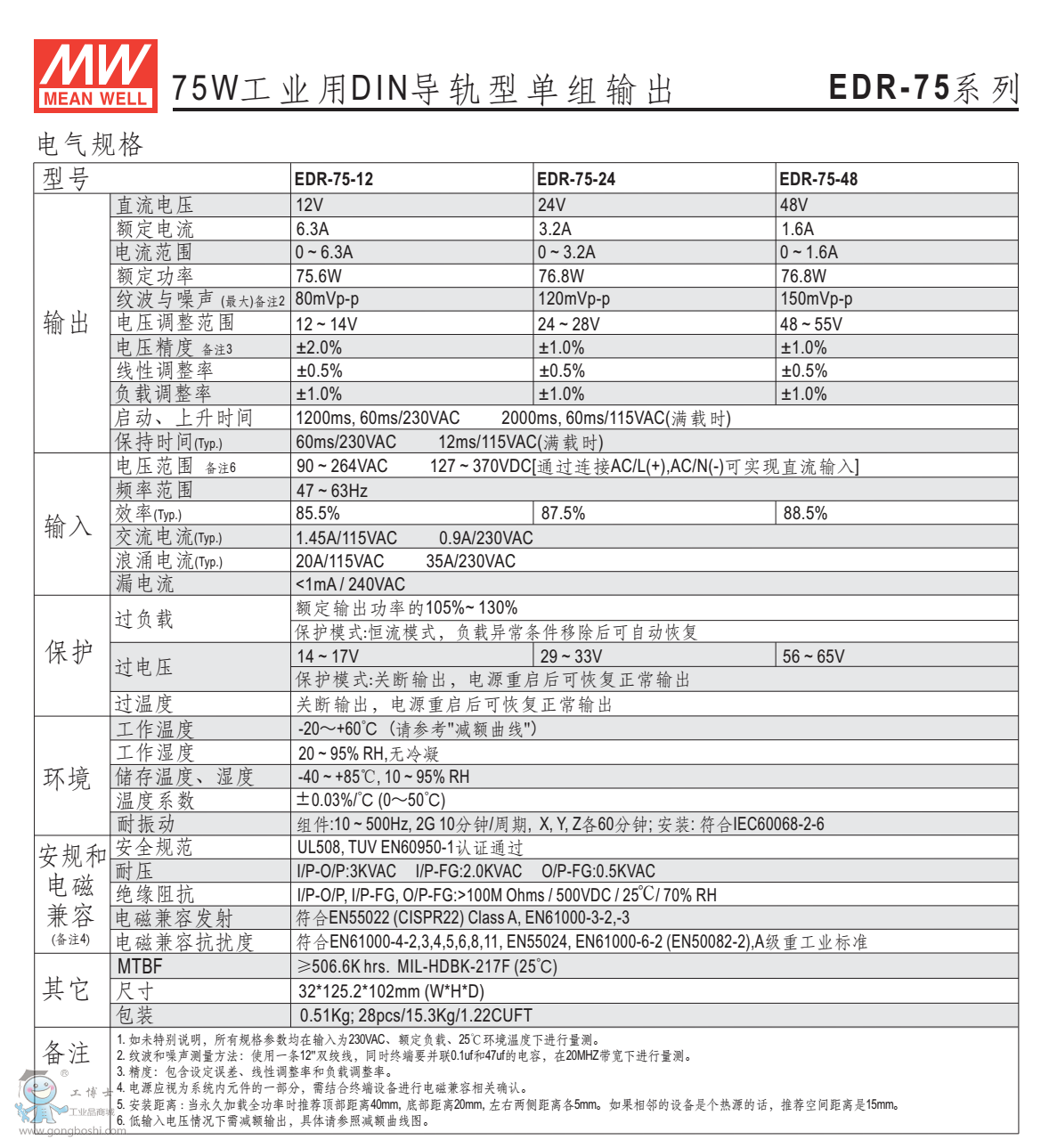 臺灣明緯導(dǎo)軌電源EDR-75-48 2年質(zhì)保 |