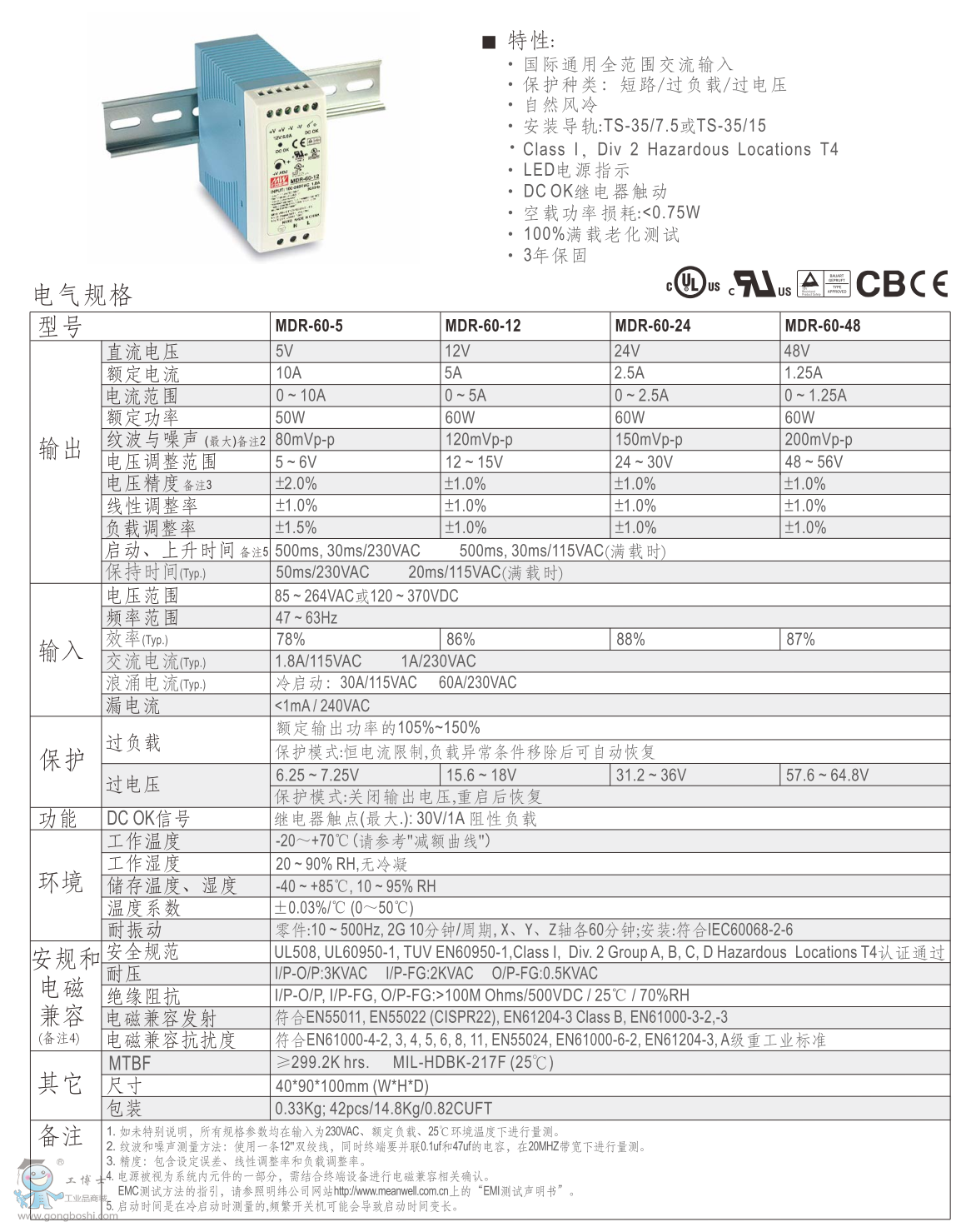 臺灣明緯導軌電源MDR-60-5 5V10A |