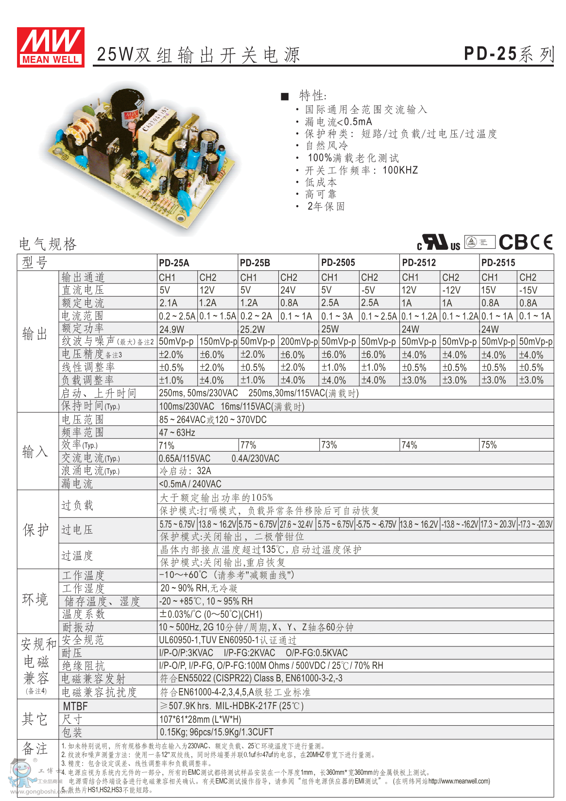 臺(tái)灣明緯PD-2515 雙組輸出開(kāi)關(guān)電源 |