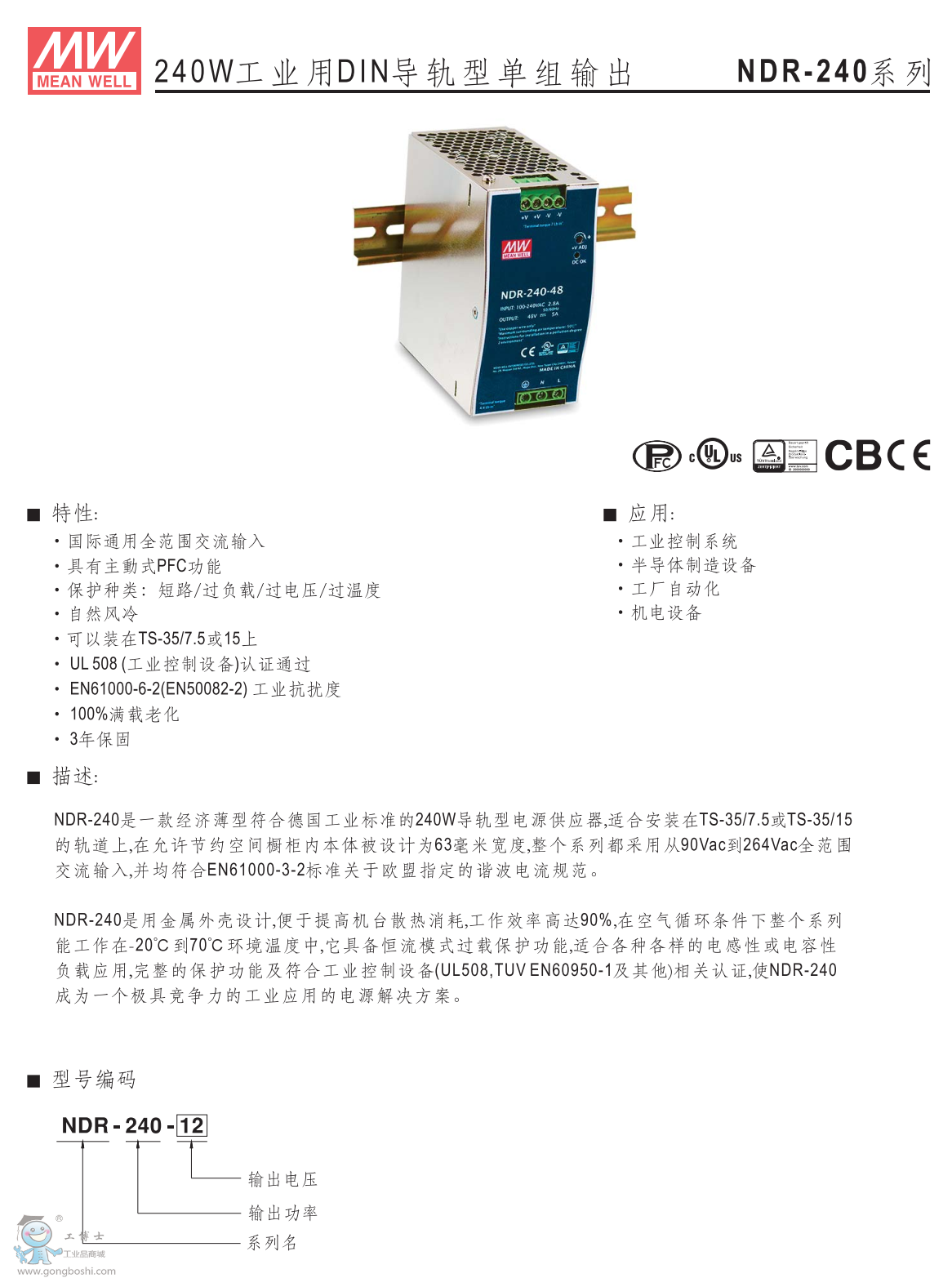 臺灣明緯導(dǎo)軌電源NDR-240-48 48V5A |