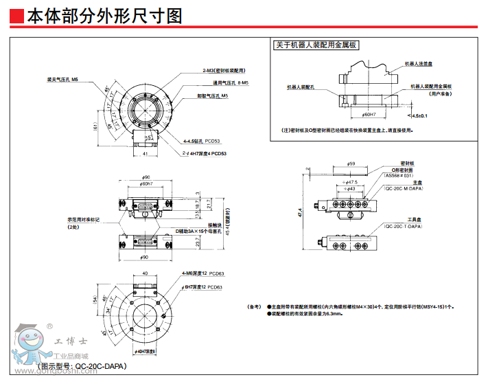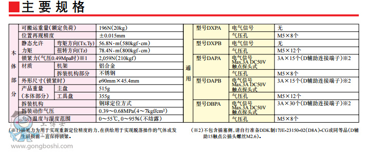 ●無接觸的吸合方式 裝配作業時,不會使主盤與工具盤接觸,通過這種吸合方式漠視偏心。 ●機械式故障保險機構 本公司獨有的拆裝機構中采用了機械式故障保險機構,使裝配氣壓停 止供給的情況下,主盤與工具盤也不會分離。
