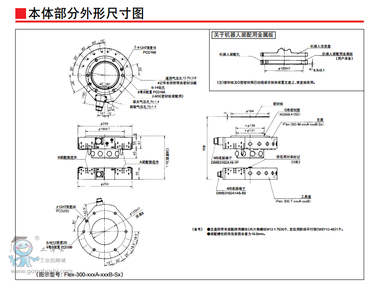 FLEX-300*適用于重量物品的裝卸/碼垛打包卸以及需要力矩剛性的用途。功能可以根據(jù) 任選件選擇氣壓孔和電氣信號接點的容量/數(shù)量。