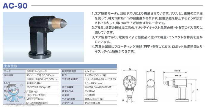 美國(guó)ATI公司產(chǎn)的 擁有通過(guò)壓力進(jìn) 行控制機(jī)能的機(jī) 器人用去毛邊工 具