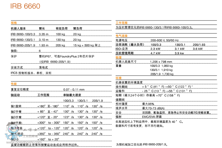 IRB 6660首要目標(biāo)是為壓機(jī)辦理應(yīng)用供給更快的機(jī)器人解決方案。