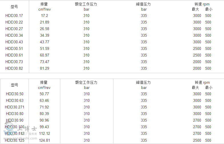 額定壓力:310bar