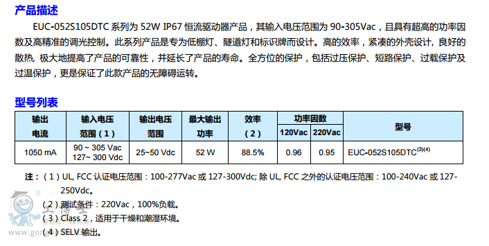 EUC-052S105DTC英飛特戶外驅動LED電源