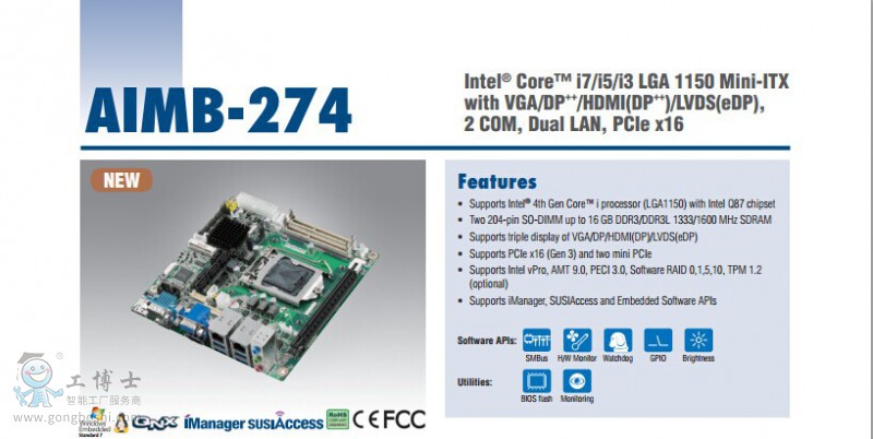搭載Intel® Core™ i7/i5/i3 LGA 1150 CPU的MiniITX主板,帶VGA/DP/HDMI(DP)/LVDS(eDP)獨(dú)立三顯輸出,2個(gè)COM輸出接口,雙千兆網(wǎng)口,PCIe x 16擴(kuò)展