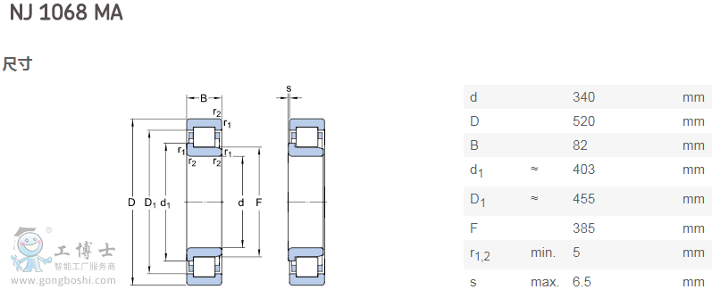 SKF斯凱孚 NJ1068MA 單列圓柱滾子軸承 |