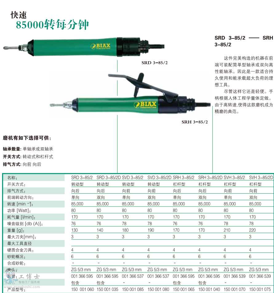 德國BIAX巴可斯 快速打磨機(jī)SRD 3-85/2 85000轉(zhuǎn)每分鐘 |