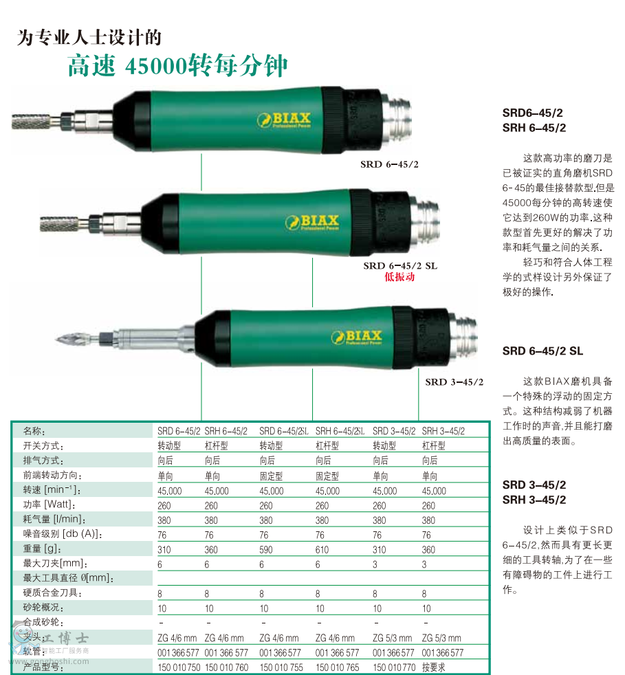 德國BIAX巴可斯 高速打磨機SRD6-45/2 45000轉每分鐘 |