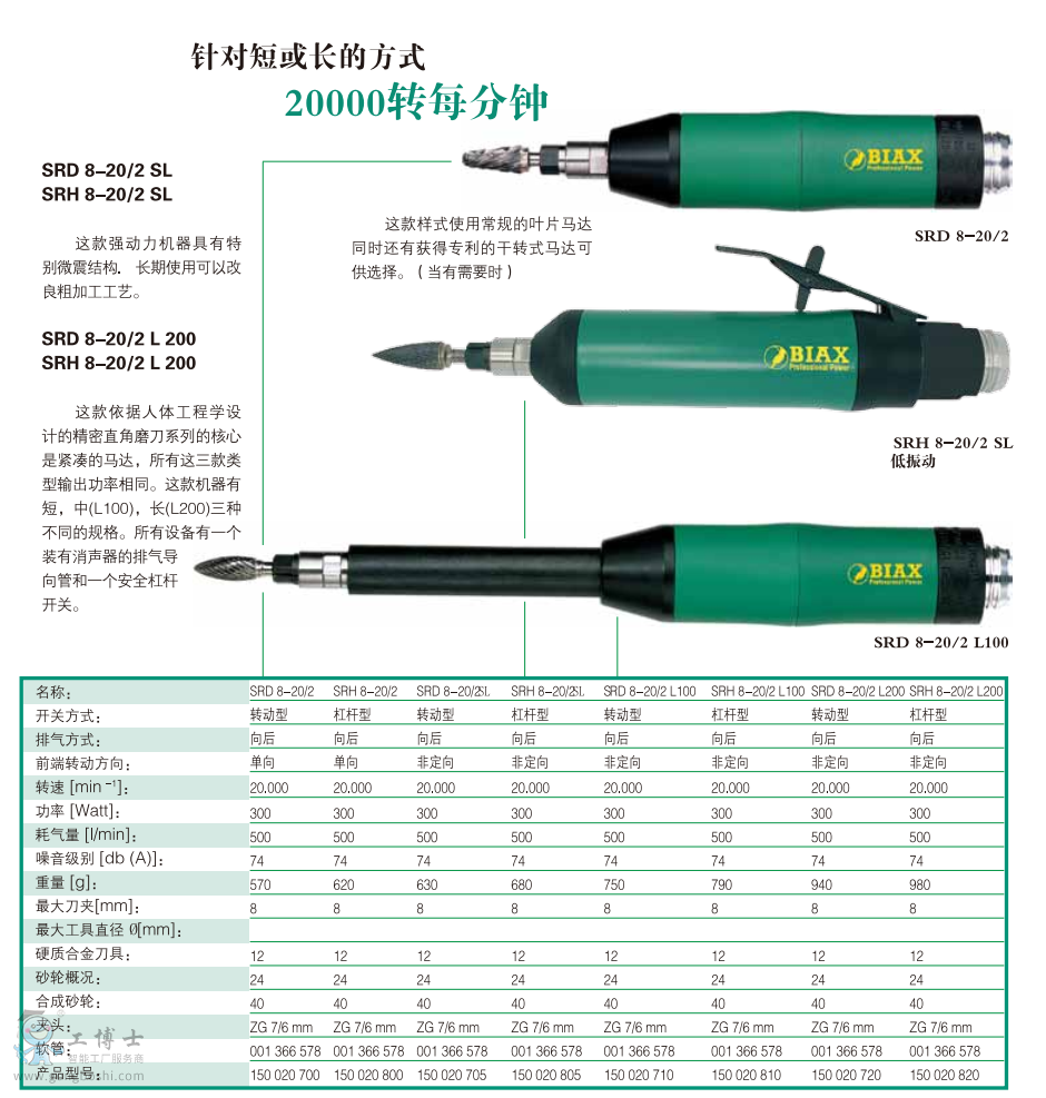 德國BIAX巴可斯 高速打磨機SRD8-20/2SL 20000轉每分鐘 |