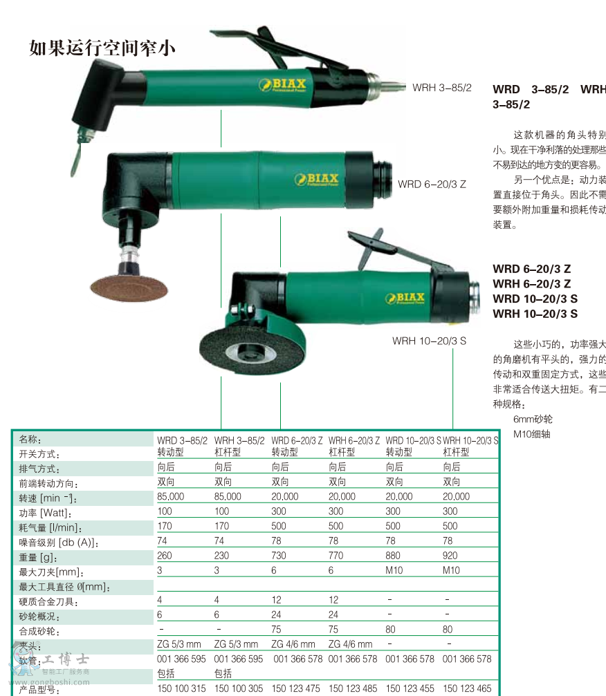 德國BIAX巴可斯 高速打磨機WRD 3-85/2 從1000轉到18000轉每分鐘 |