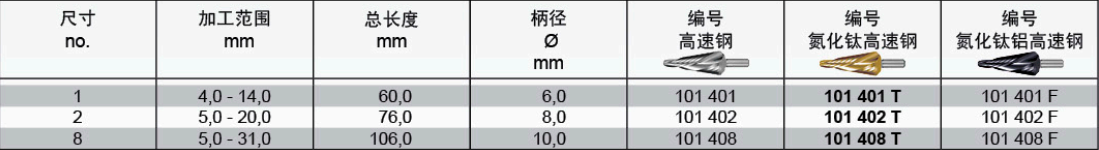 德國RUKO銳科錐形擴(kuò)孔鉆高速鋼,鍍鈦高速鋼及氮化鈦鋁涂層高速鋼 CBN磨制,螺旋凹槽帶分裂式鉆尖 |