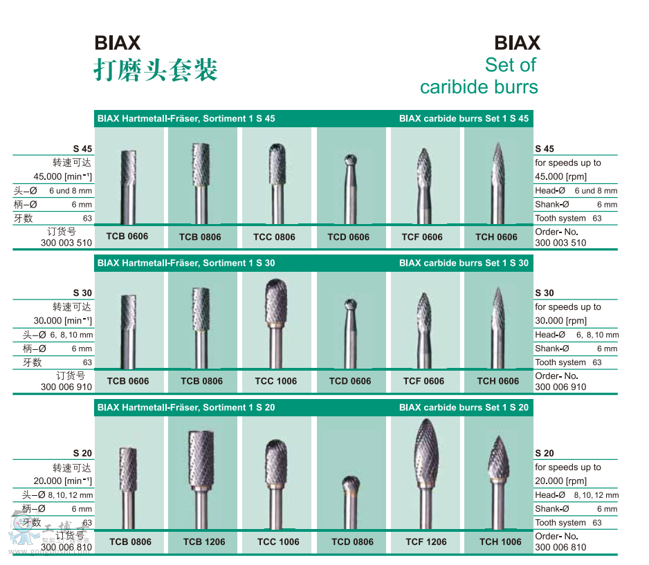 德國(guó)BIAX巴可斯 打磨頭套裝 S45 |