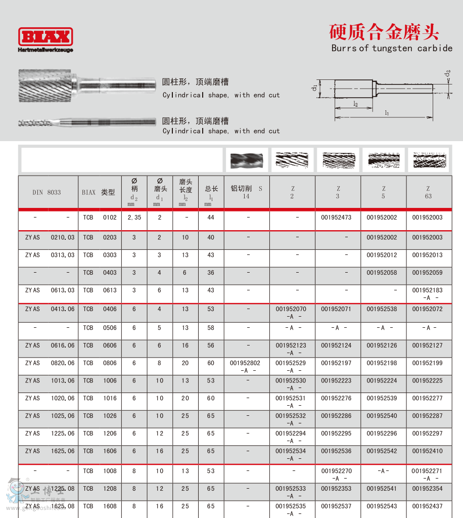 德國BIAX巴可斯 TCB 0102 硬質(zhì)合金磨頭 |