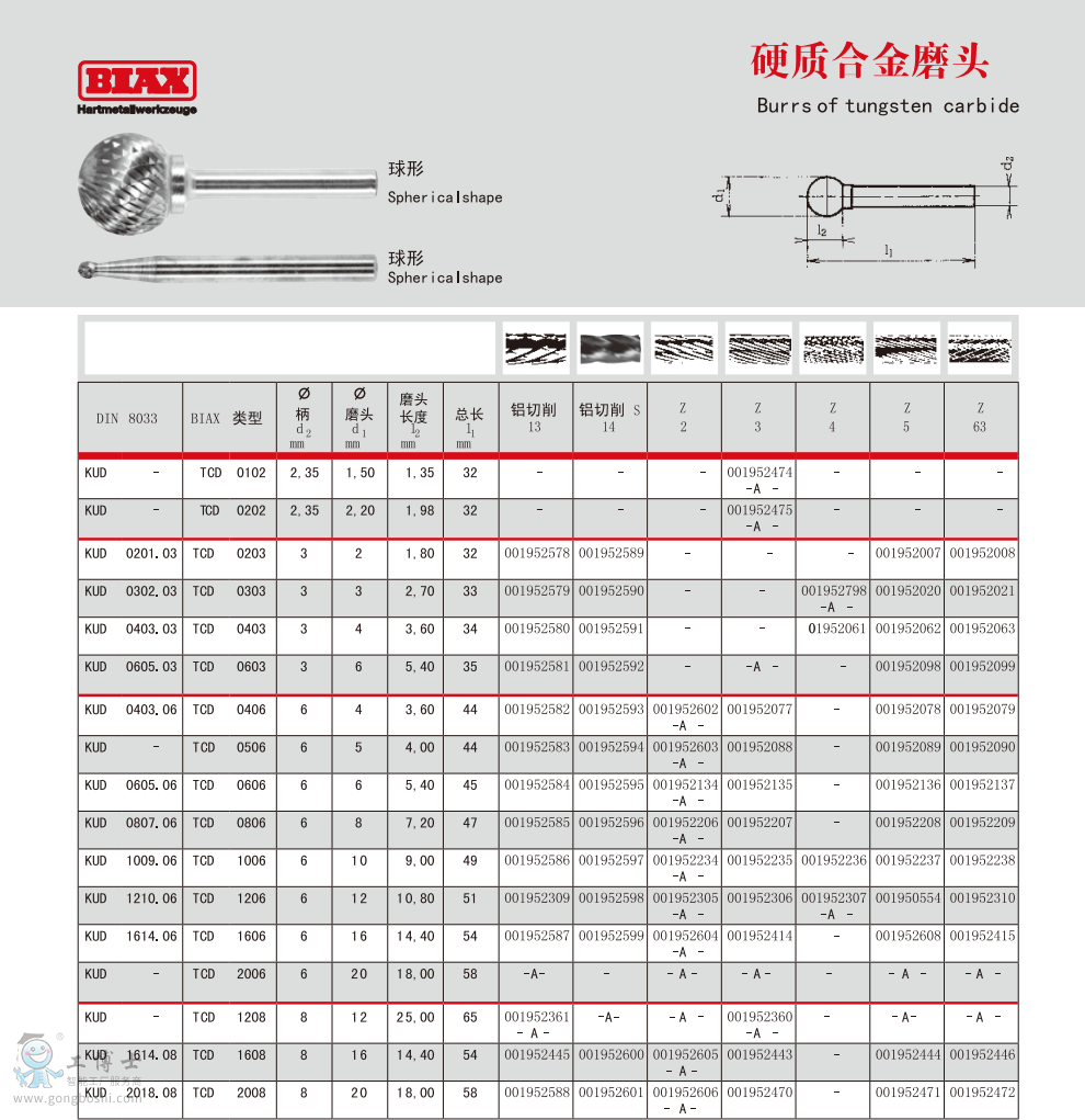 德國BIAX巴可斯 TCD 0102 硬質合金磨頭