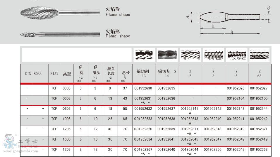 德國BIAX巴可斯 TCF 0303 硬質(zhì)合金磨頭 |