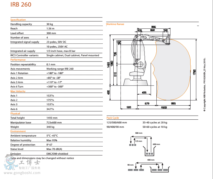 IRB 260機器人以全球應用*廣的工業機器人IRB 2400(安裝數量超過14000臺)為設計基礎。