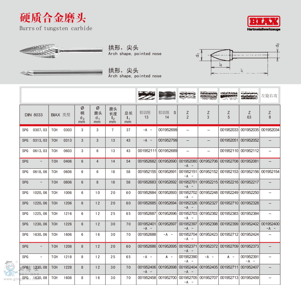 德國BIAX巴可斯 TCH 0303 硬質合金磨頭