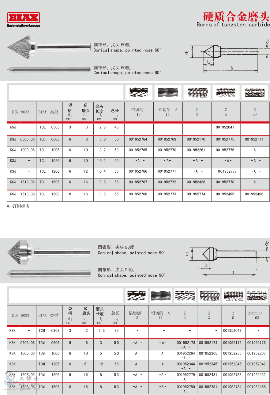 德國BIAX巴可斯 TCM 0303 硬質合金磨頭