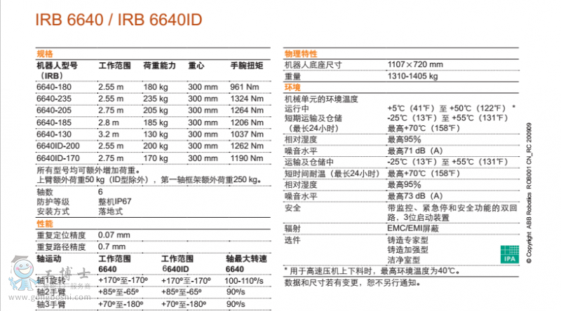 IRB6640-185 2.8m 185kg IP67鑄造專家,潔凈室ISO 5級(jí)