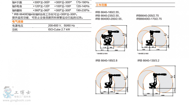 IRB6640-235 2.55m 235kg IP67鑄造專家,潔凈室ISO 5級(jí)