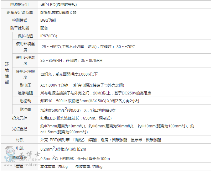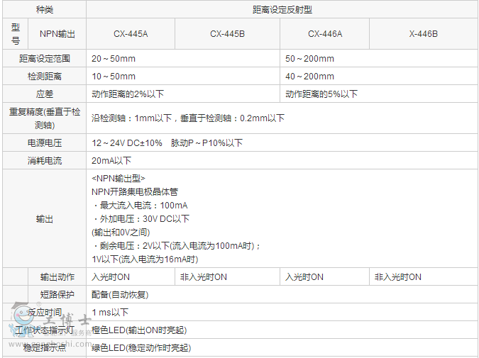 (注):檢測距離,應差與重復精度是相對于白色無光澤紙(100×100mm)的數值。