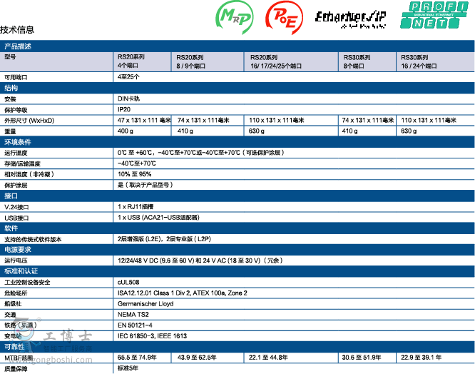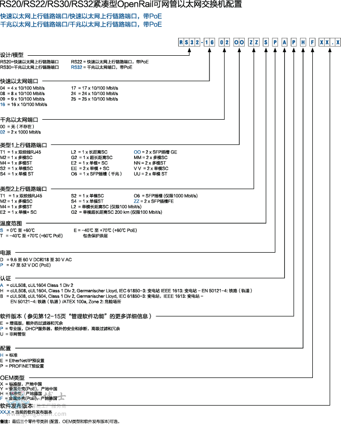 RS20緊湊型OpenRail可網管以太網交換機可以容納4到25個端口,提供各種不同的快速以太網上行鏈路端口—全銅纜或者1、2或3個光纖端口。光纖端口適用于多模和/或單模。
