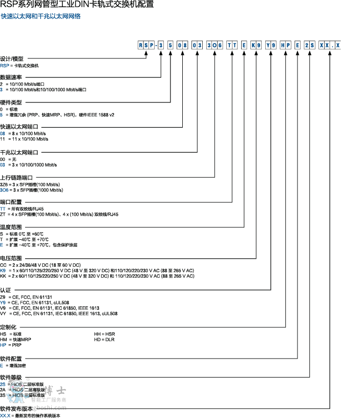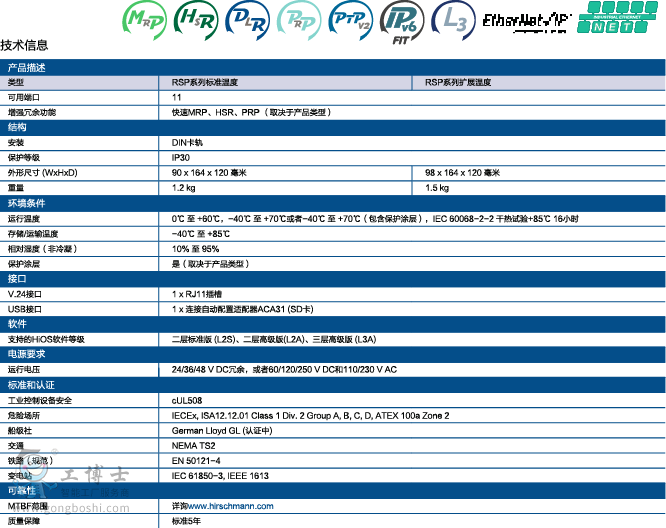 全新的RSP系列交換機帶有穩固的硬件和強大的操作系統,能夠承受極端惡劣惡劣的環節條件。整合的新冗余協議可以支持不間斷的數據通信。這些新技術:PRP(并行冗余協議)和HSR(高可用性無縫冗余)都基于國際IEC62439標準,因此可以確保未來的安全性和互用性。精確時間同步符合IEEE1588v2標準要求,可以同步傳感器,驅動器和檢測設備。千兆以太網網可以為核心設備提供快速連接能力,同時終端設備的連接利用100Base-TX—單獨使用或者與100Base-FX組合使用。