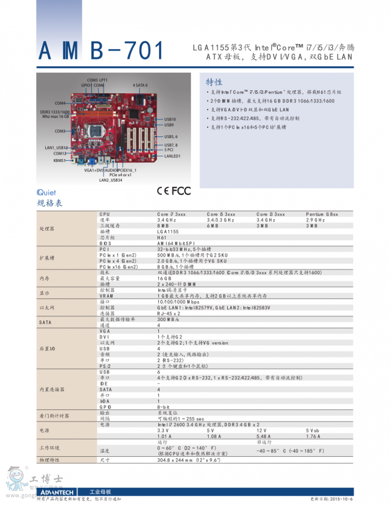 支持ATX 母板或 多達15槽的PICMG無源底板