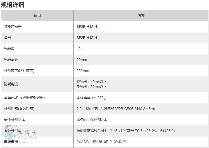 SF2B-H12-N松下光幕傳感器檢測物體φ27mm(20mm間距) |