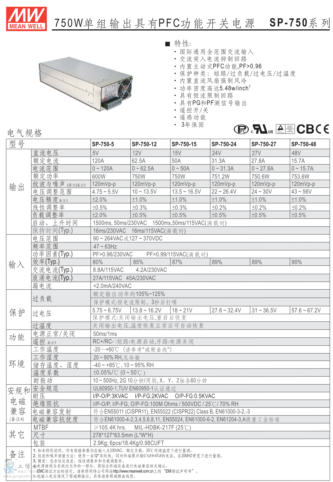 MW臺(tái)灣明緯開關(guān)電源SP-750-24 750W 24V 31.3A |