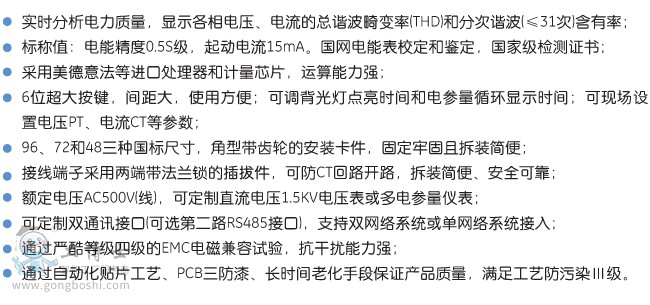 該系列儀表可以直接替代電力變送器、測量指示儀表等相關的輔助單元,通過功能和擴展模塊的選擇,可以實現數字通訊、變送和四遙等功能;已經廣泛應用于各種開關柜、直流屏等電力設備中,集成到各類控制系統、SCADA系統中、實現遠程抄表等能源管理功能。
