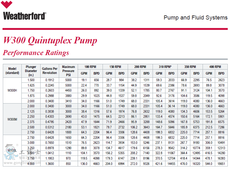 威德福Weatherford五缸工業(yè)泵 W300 W300H W300M W300L