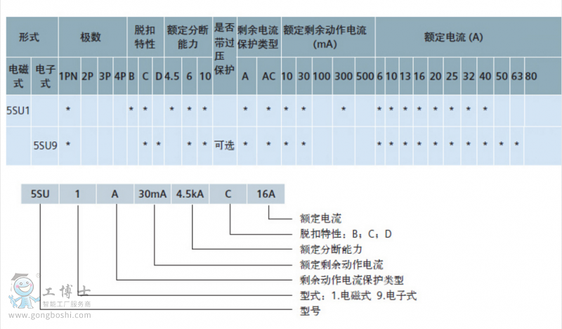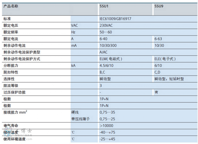 西門(mén)子電磁式剩余電流保護(hù)斷路器5SU1353-1KK20 30mA 4.5KA C20