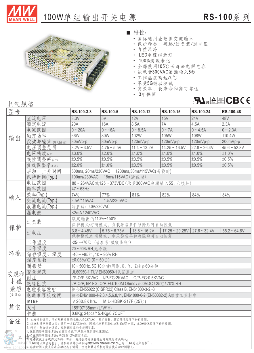 明緯RS-100-24監控照明用開關電源100W24V4.5A 現貨 |