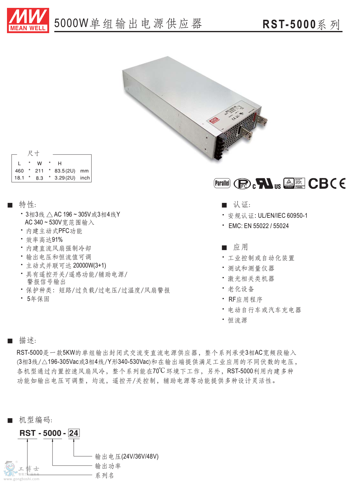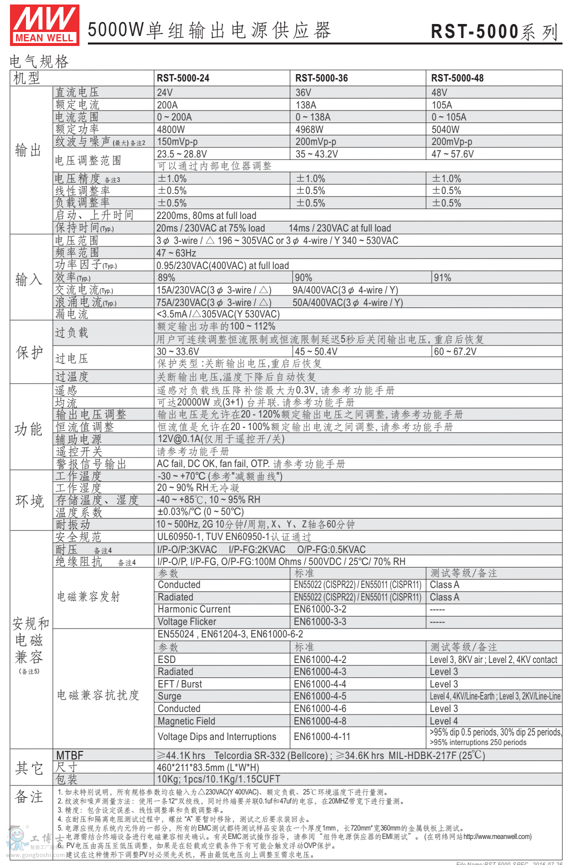 明緯開關電源RST-5000-36 5000W 36V138A大功率電源供應器 |
