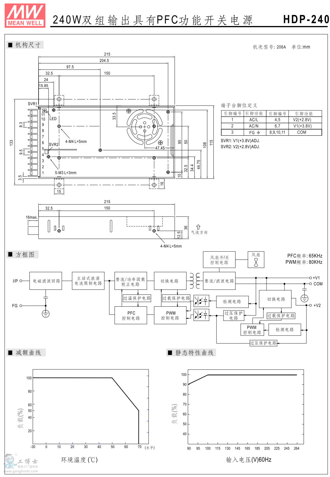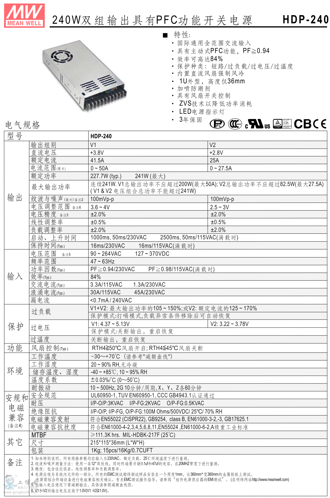 明緯HDP-240雙路輸出PFC開關電源3.8V41.5A/2.8V25A顯示屏專用