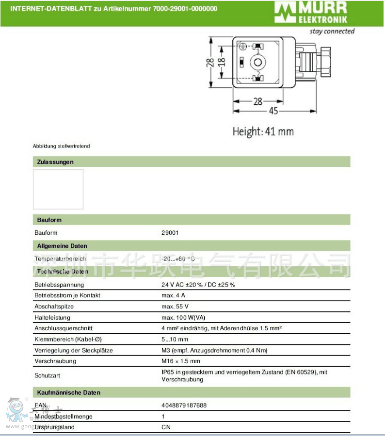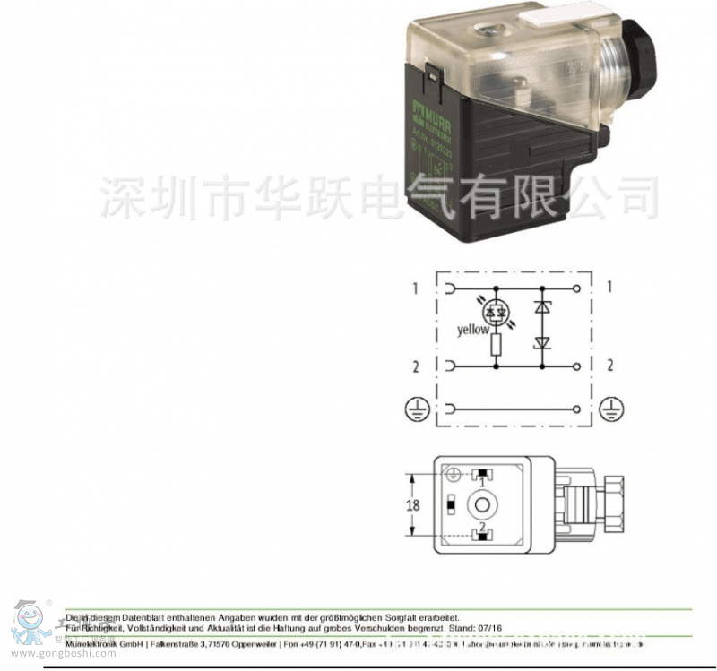 深圳市華躍氣有限公司作為德國穆爾(MURR)授權的一級全線總代理公司。可為客戶提供有競爭力的價格和完備的廠商技術支持。 德國穆爾電子公司(MURRElektronik)于1975年成立于德國歐本威勒,其在工業電子和電氣控制領域處于市場**地位。可為客戶提供各種經現場測試的實用產品與系統,產品廣泛用于機床,原材料處理設備及生產線的控制,測試及監控。