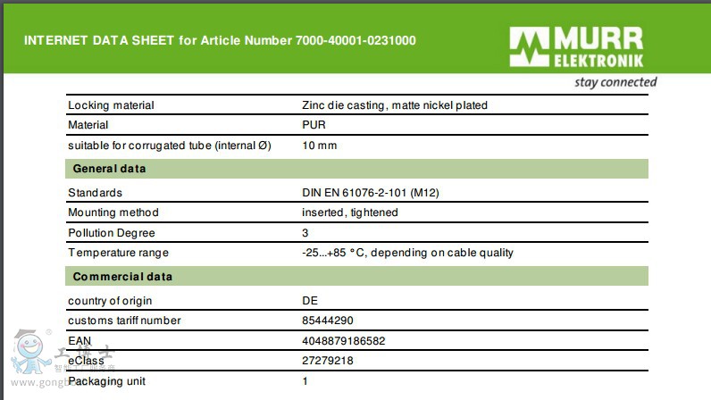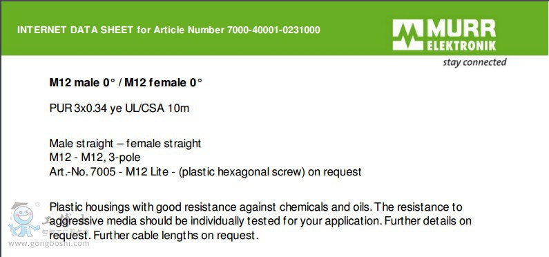 德國MURR穆爾一級代理.產品包括:連接器、變壓器、電源開關、電池閥、I/O模塊.傳感器與執行器的連接系統:M8系列連接器:M8插頭、M8單頭帶線、M8雙頭帶線.M12系列連接器:M12單頭帶線、M12插頭、M12雙頭帶線.分線盒系列:M8、MVPS8、M12、MVP12、特殊連接器、電磁閥插頭.自動化系統:IP120緊湊型模塊 MBK、IP120可擴展型模塊 MBM、IP67緊湊型模塊 MVK、ASI總線模塊、IP20/40MASi、IP67MASI、IP68MASI.接口模塊:光耦/固態繼電器、光耦模塊、電源光耦模塊、電機控制模塊、直流電機控制模塊、智能接口模塊、前置操作面板、線路濾波器、干擾抑制器、接觸器的抗干擾抑制器、電磁閥適配器、電機干擾抑制器、通用干擾抑制器、繼電器模塊、單路薄片式繼電器、多路薄片式繼電器、時間繼電器.變壓器和緊湊型電源:變壓器、緊湊型電源模塊、單相、濾波、線性濾波、開關電源、三相、電壓轉換及整流模塊、電壓轉換.等。