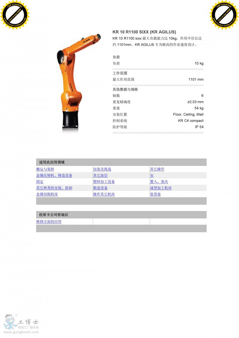 庫卡kuka低負荷機器人KR10 R1100 SIXX(KR AGILUS) |
