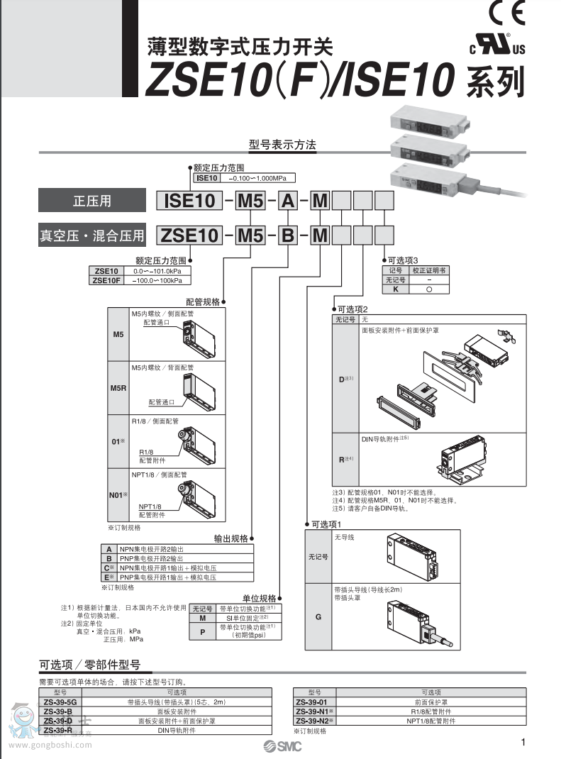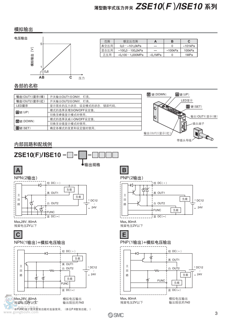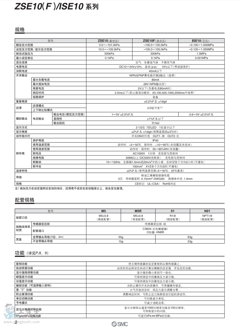 SMC 薄型數(shù)字式壓力開關 ZSE10(F)/ISE10