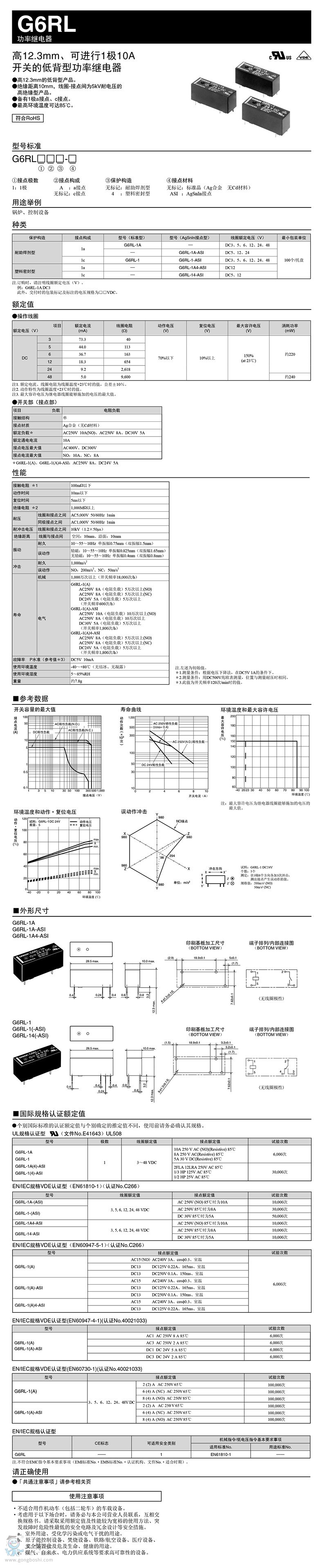 G6RL-1 功率繼電器 歐姆龍/OMRON原裝** 千洲