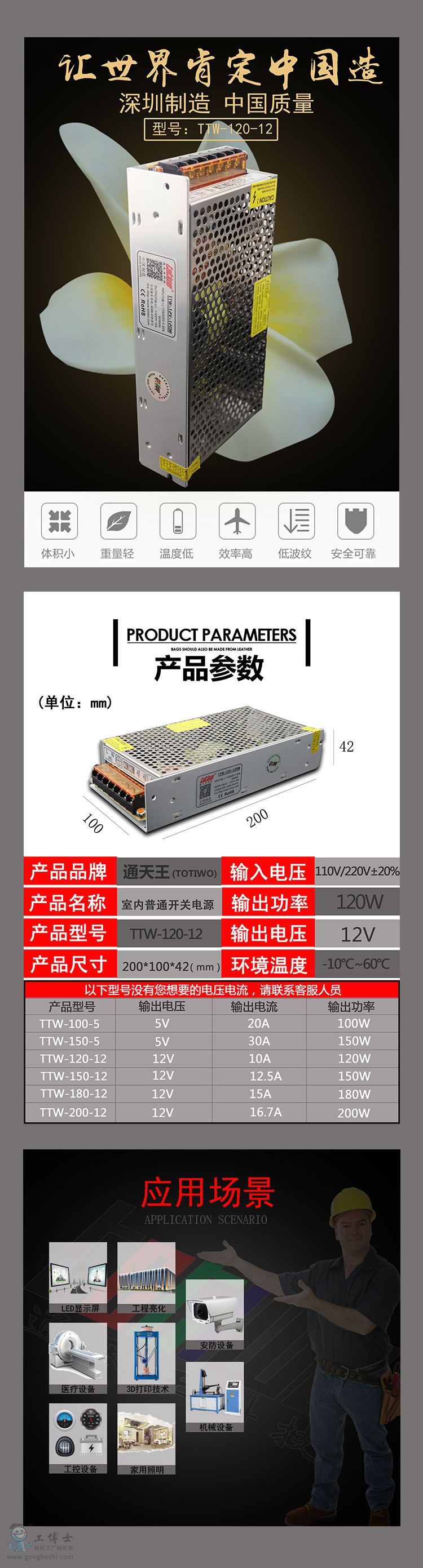 滿負荷高溫燒機,100‰老化測試,體積小、重量經、外觀美等……