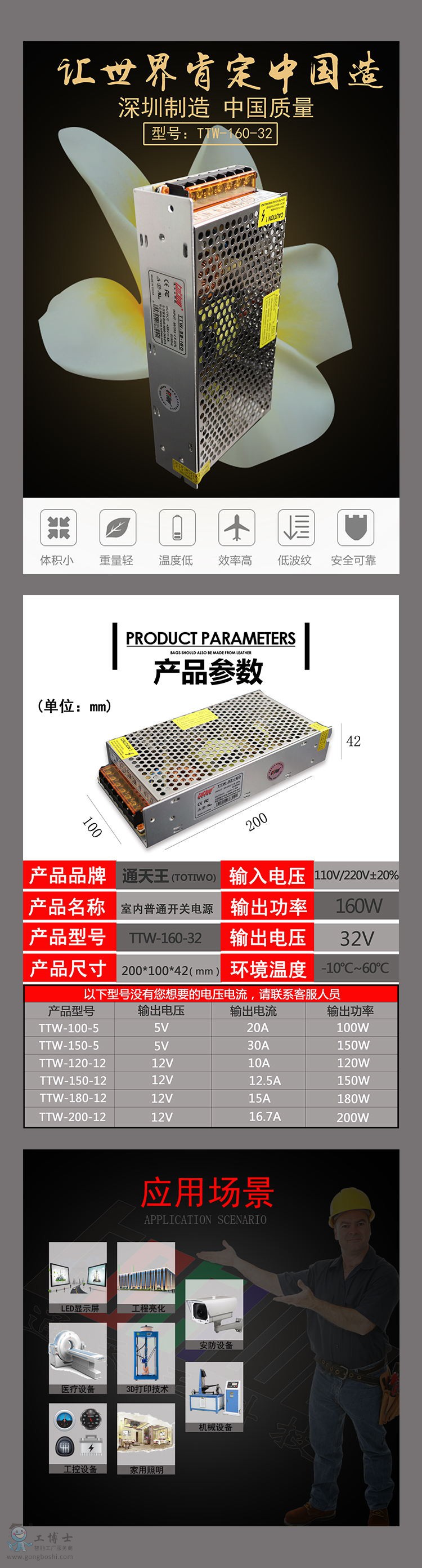 滿負荷高溫燒機,100‰老化測試,體積小、重量經、外觀美等……