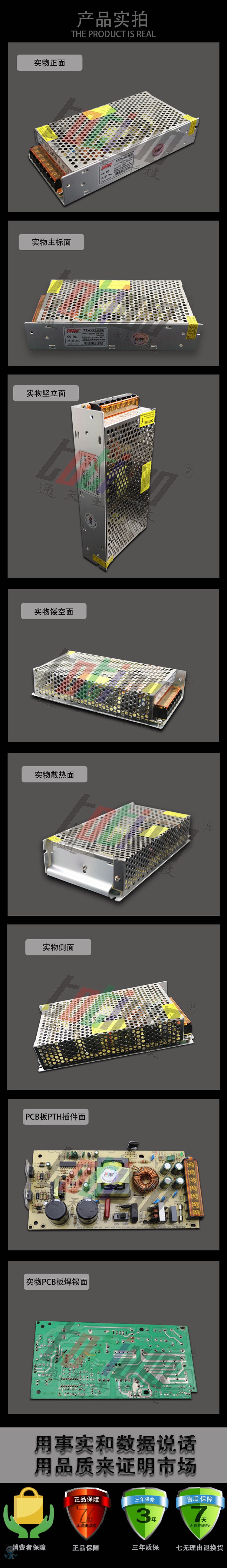 交流輸入轉換由開關選擇,具有過流短路保護功能 自冷散熱 、集成電路,100%滿負荷燒機測試,低價位、高可靠,特別為LED電子顯示屏供電設計